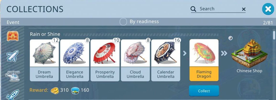 ▶ Assemble the Rain or Shine collection to get the Chinese Shop building.