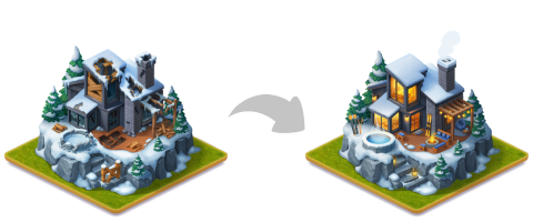 Complete event quests, collect enough holiday resources and build the Basic Event Building. Upgrade it to level 3, and it'll turn into its restored version in its full glory: Main Event Building. Use it to hold unique events there and reap the rewards of your hard labor!